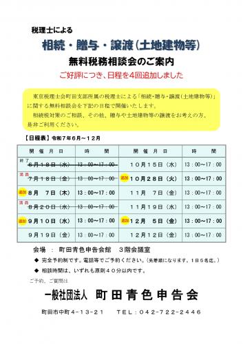 令和7年「相続・贈与・譲渡 相談会」の日程を、4回追加しました。